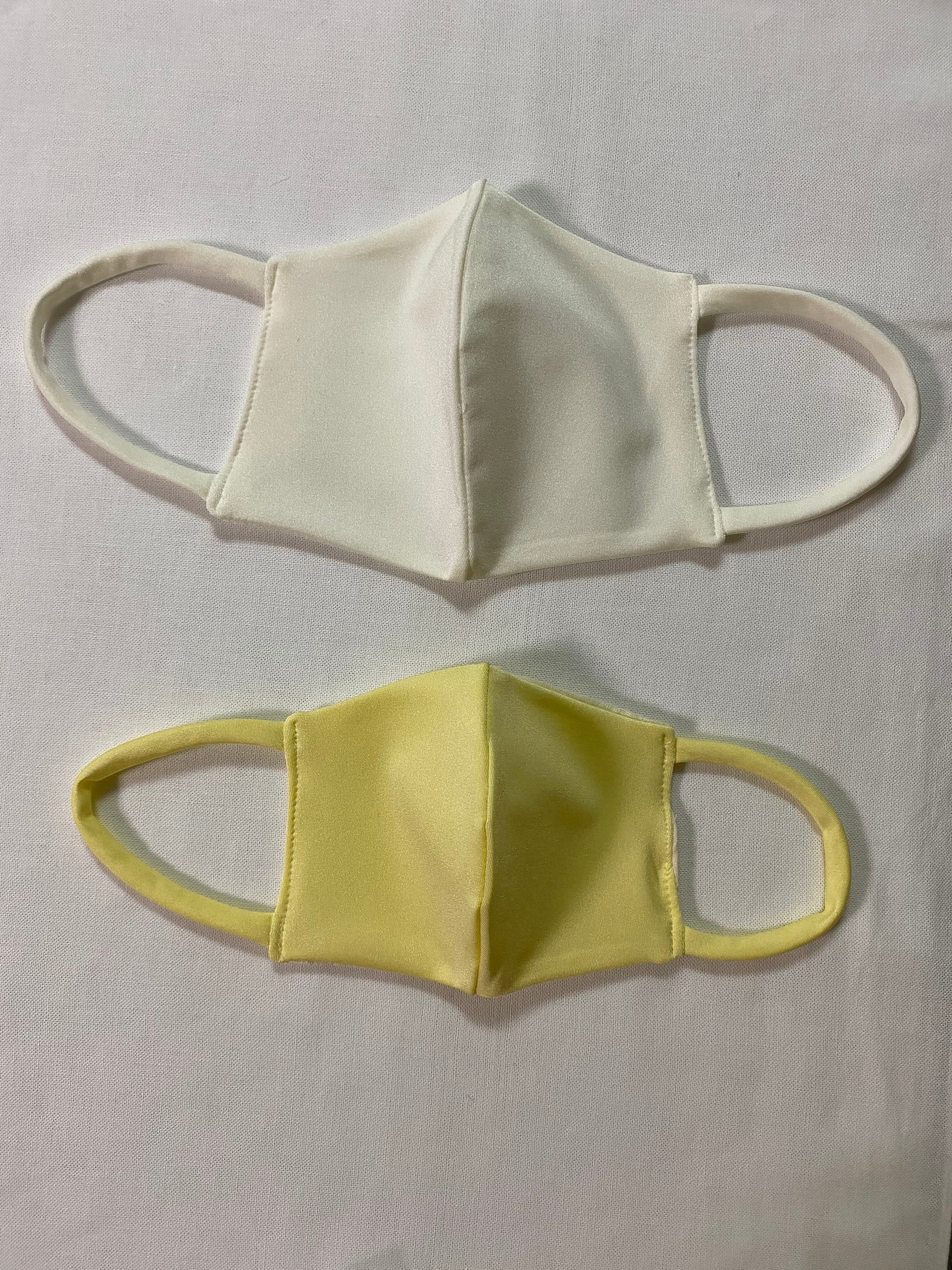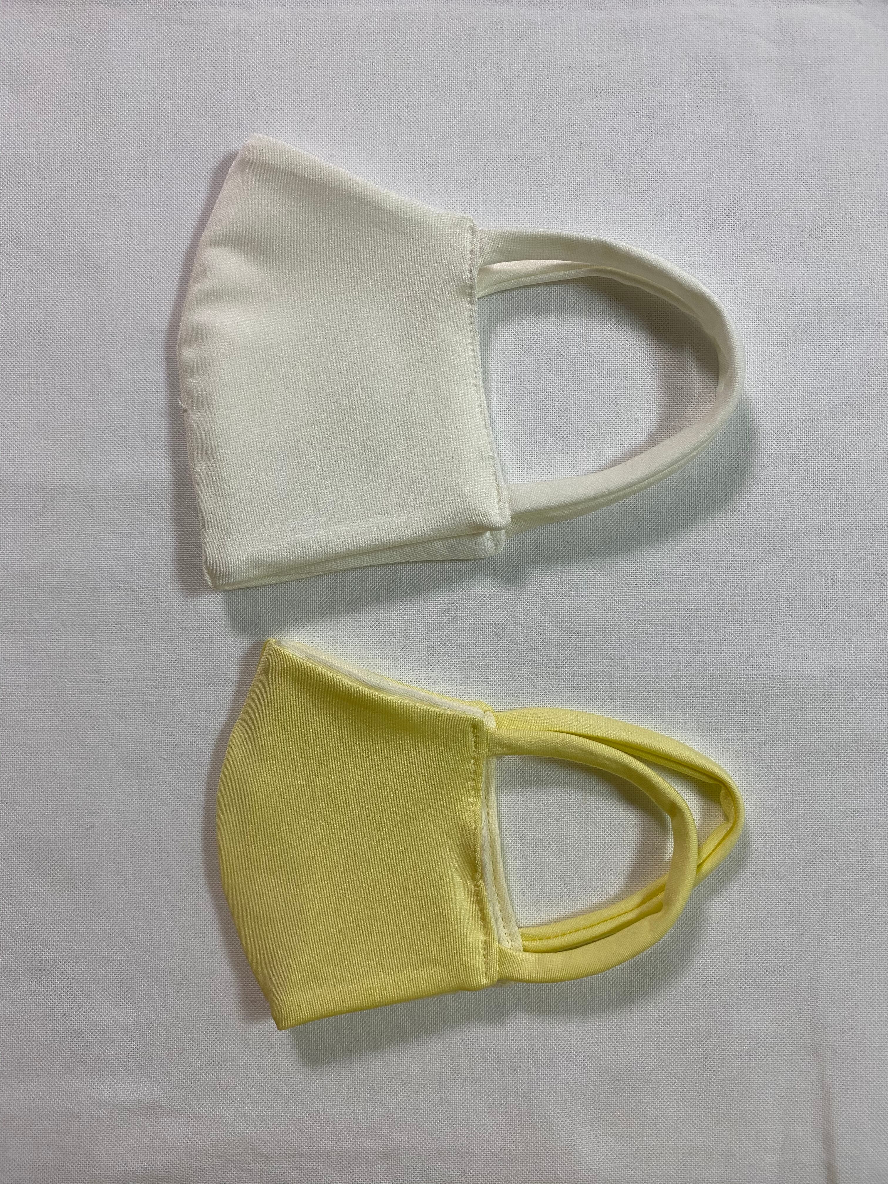レオタードの生地で作っているマスクです。 小さめサイズなので女性の方にオススメです。 色はピンク・アイスグリーン・ホワイト・クリームになります